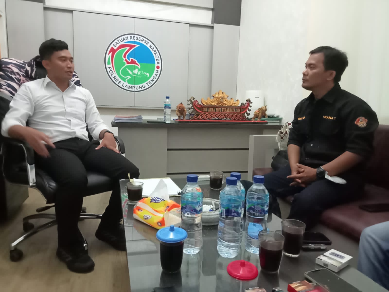 Lampung Tengah, (Radarnews.id) -DPC Gerakan Nasional Anti Narkotika(GRANAT) kunjungan ke Polres Lampung Tengah dan Diterima langsung oleh Kasat Narkoba Polres Lampung Tengah AKP. Dwi Atma Yofi, S. Ik.Mewakili Kapolres Lampung Tengah AKBP. Doffie Fahlevi Sanjaya,.