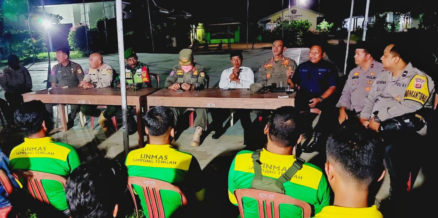Selain melaksanakan patroli cipta kondisi ke sejumlah Kampung, Kapolsubsektor Kotagajah, Ipda Mursidi bersama Kabid Linmas Kab. Lamteng Nasrudin, S.E., M.M, Camat Kotagajah Prawito, S.E., M.E, Bhabinsa Koramil Punggur Sertu Priyo dan pihak terkait lainnya juga turut menyambangi warga yang sedang ronda malam, salah satunya di Kp. Sritejo Kencono dengan memberikan pesan-pesan Kamtibmas.
