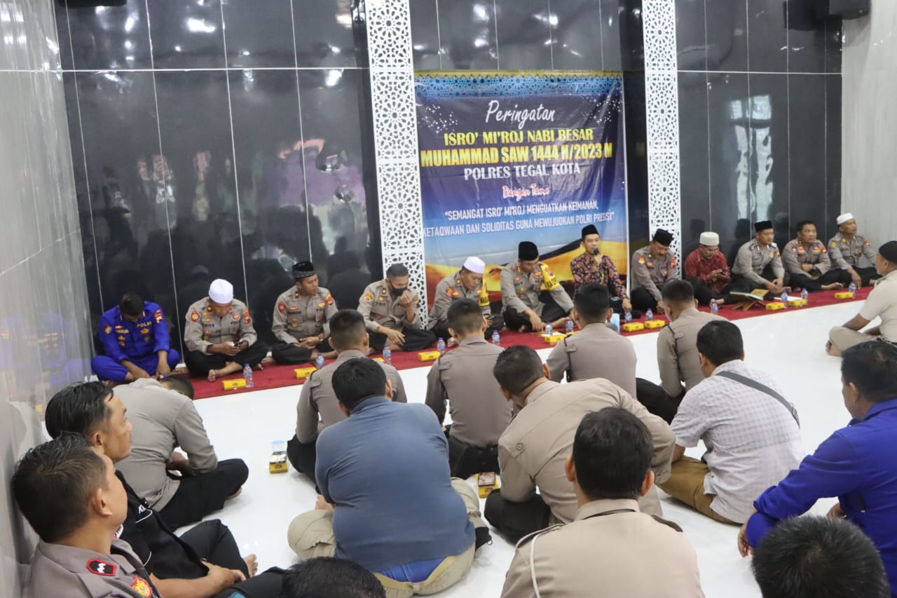 Peringatan Isra Mi’raj yang diikuti oleh personel Polri dan ASN dilingkungan Polres Tegal Kota beserta anggota Bahayangkari ini, dilaksanakan di Masjid Al Amin Mapolres setempat pada Kamis (16/2/2023) pagi.