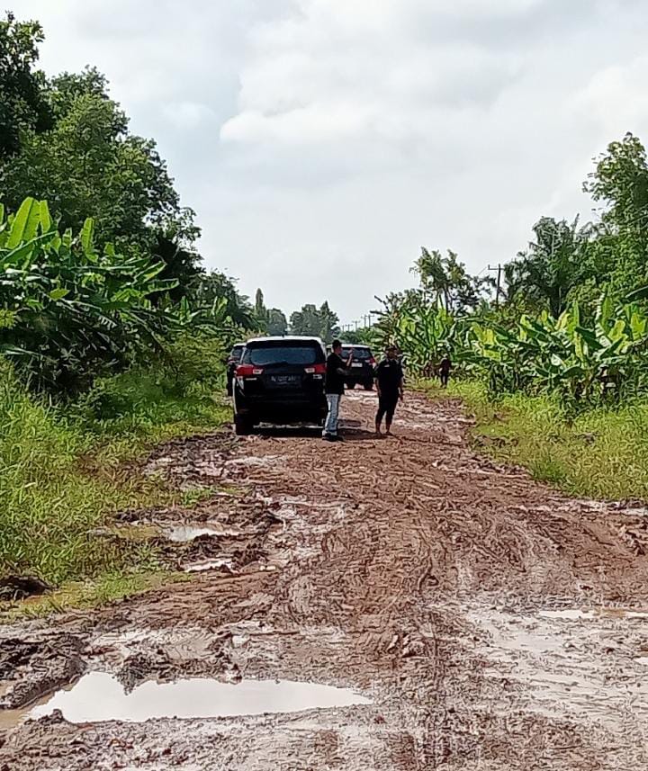 “Ia b’g mobil kita nggak bisa ke lokasi di Desa Sumber Makmur sana, karena jalan yang cukup extrim dan berlubang yang cukup dalam, sehingga kita semua Rush, Inova, bahkan mobil Patwal Satlantas dan Perhubungan harus ikut putar balik dan menunggu di perbatasan antara Kecamatan Mesuji dan Mesuji Timur”.