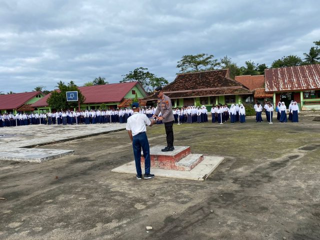 Tubaba,(Radar News.id)— Kasat pembinaan masyarakat (Binmas) Polres Tulang Bawang Barat Polda Lampung AKP Aladin Effendi, S.H memimpin upacara di sekolah SMPN 7 Tulang Bawang Barat.