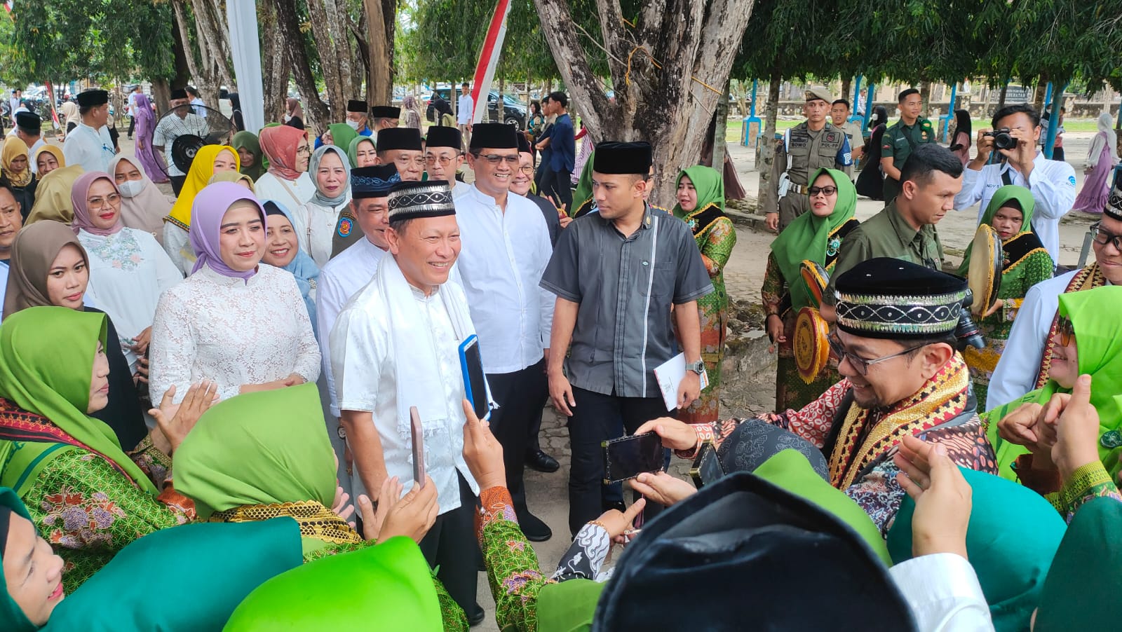 TUBA,(Radarnews.id) -Penjabat Bupati Tulang Bawang, Qudrotul Ikhwan bersama ribuan jamaah menghadiri pengajian akbar dalam rangka menyongsong Peringatan HUT Provinsi Lampung dan Kabupaten Tulang Bawang, dihalaman Pemkab setempat. Kamis (16/3/2023).