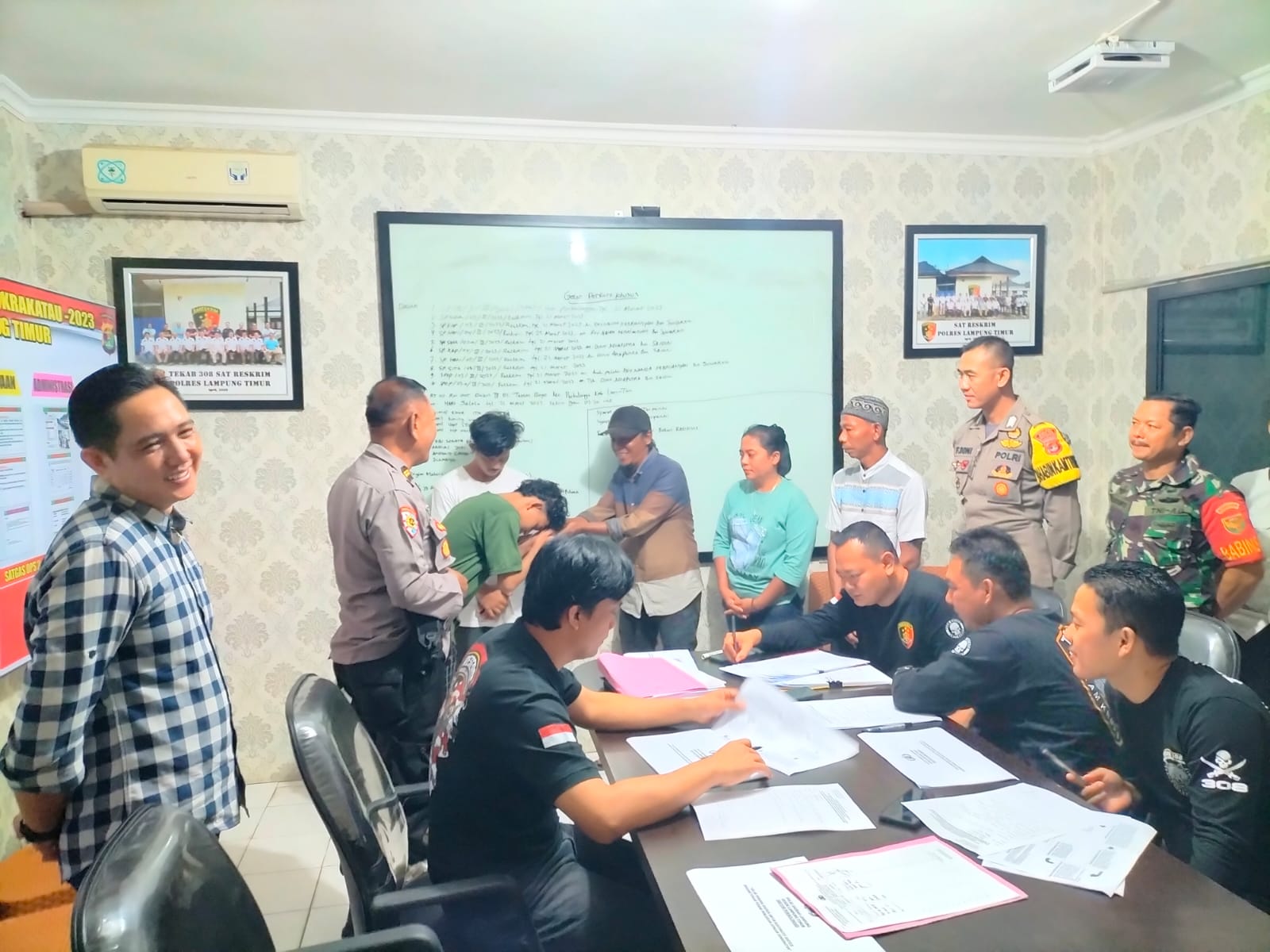 “Hari ini pelaku dan korban telah sepakat melakukan perdamaian secara Restorative Justice sebagai salah satu langkah mewujudkan stabilitas dan Kondusifitas Kabupaten Lampung Timur khususnya Desa Taman Bogo”, ucapnya.