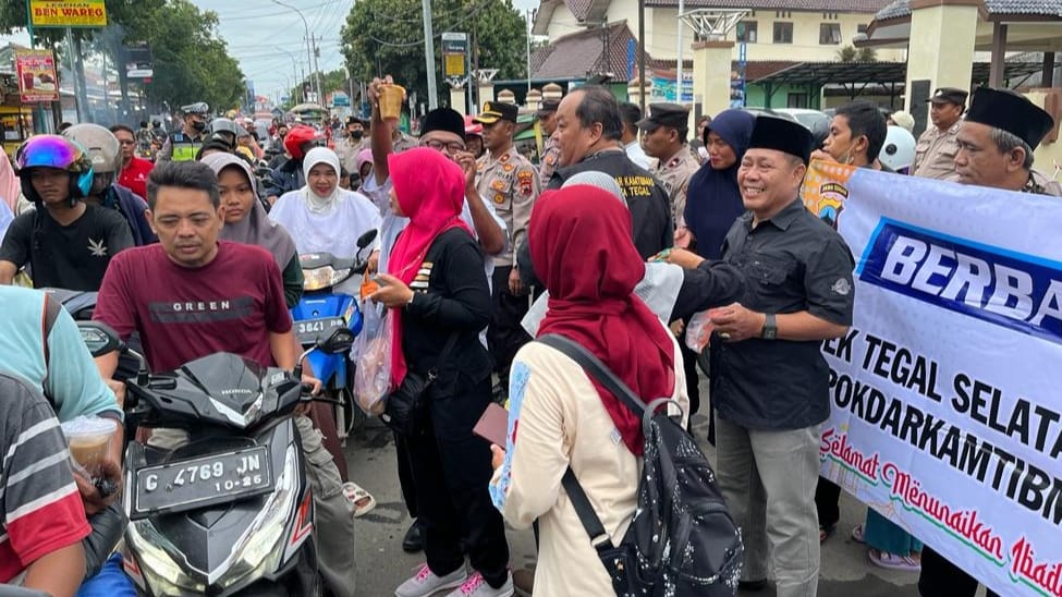 Takjil atau makanan berbuka puasa dibagikan kepada sejumlah masyarakat dan pengguna jalan. Turut hadir Kapolsek dan Camat Tegal Selatan bersama Ketua beserta sejumlah pengurus Pokdarkamtibmas Kota Tegal.