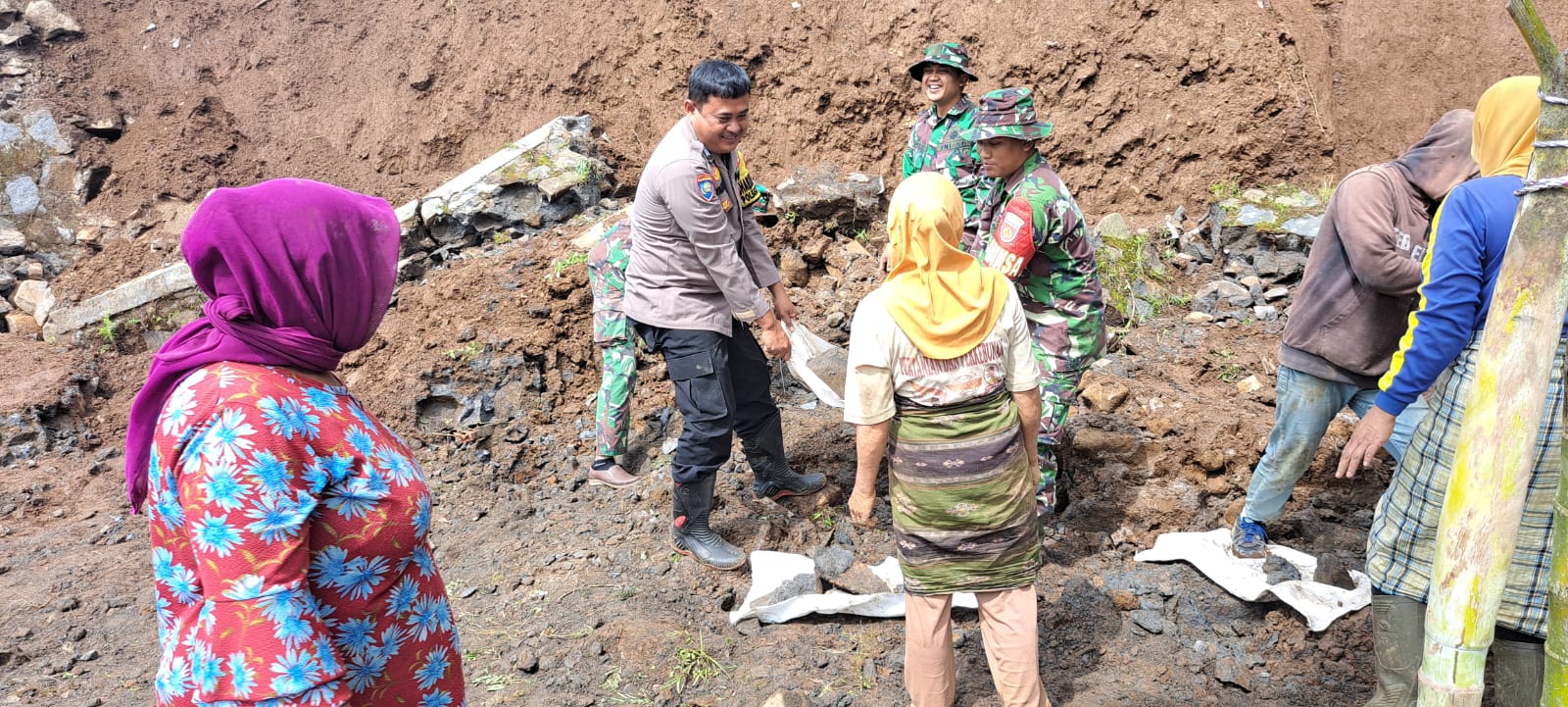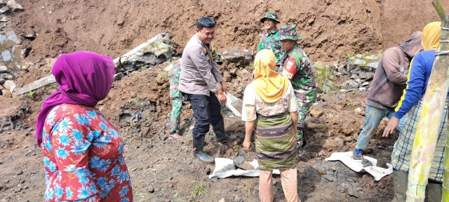 “Hari ini TNI-Polri bersinergi dengan petugas BPBD, Perangkat dan masyarakat bergotong-royong melaksanakan kerja bakti sosial pembersihan dan evakuasi rumah akibat longsor tersebut,” jelas AKP Agus.