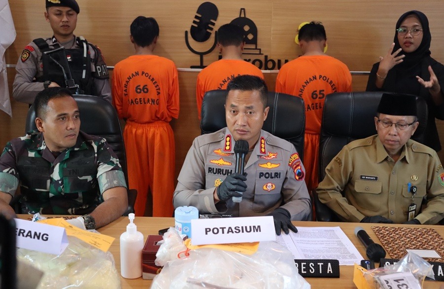 Kapolresta Magelang Kombes Pol Ruruh Wicaksono, S.I.K., S.H., M.H. dalam Konferensi Pers menjelaskan, pengungkapan kasus kepemilikan dan penjualan obat petasan ini merupakan bagian dari hasil penyelidikan pasca ledakan petasan. Yang mana peristiwa itu menghancurkan 11 rumah di Dusun Junjungan, Desa Giriwarno, Kecamatan Kaliangkrik, Kabupaten Magelang Minggu (26/03/2023) malam.