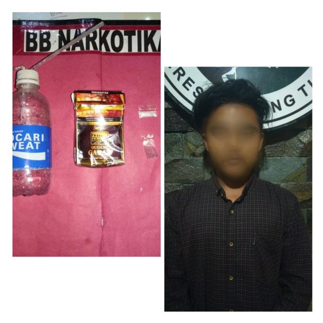 Kapolres menambahkan dari hasil penangkapan, petugas Kepolisian melakukan penggeledahan badan serta tempat ditemukan barang bukti berupa 3 Buah plastik klip bening yang didalamnya terdapat kristal-kristal putih diduga keras Narkotika golongan I jenis sabu. Bruto 0.51 Gram, 1 buah Plastik klip bening, 1 buah kotak rokok dan 1 perangkat alat hisap sabu yang terbuat dari botol plastik.