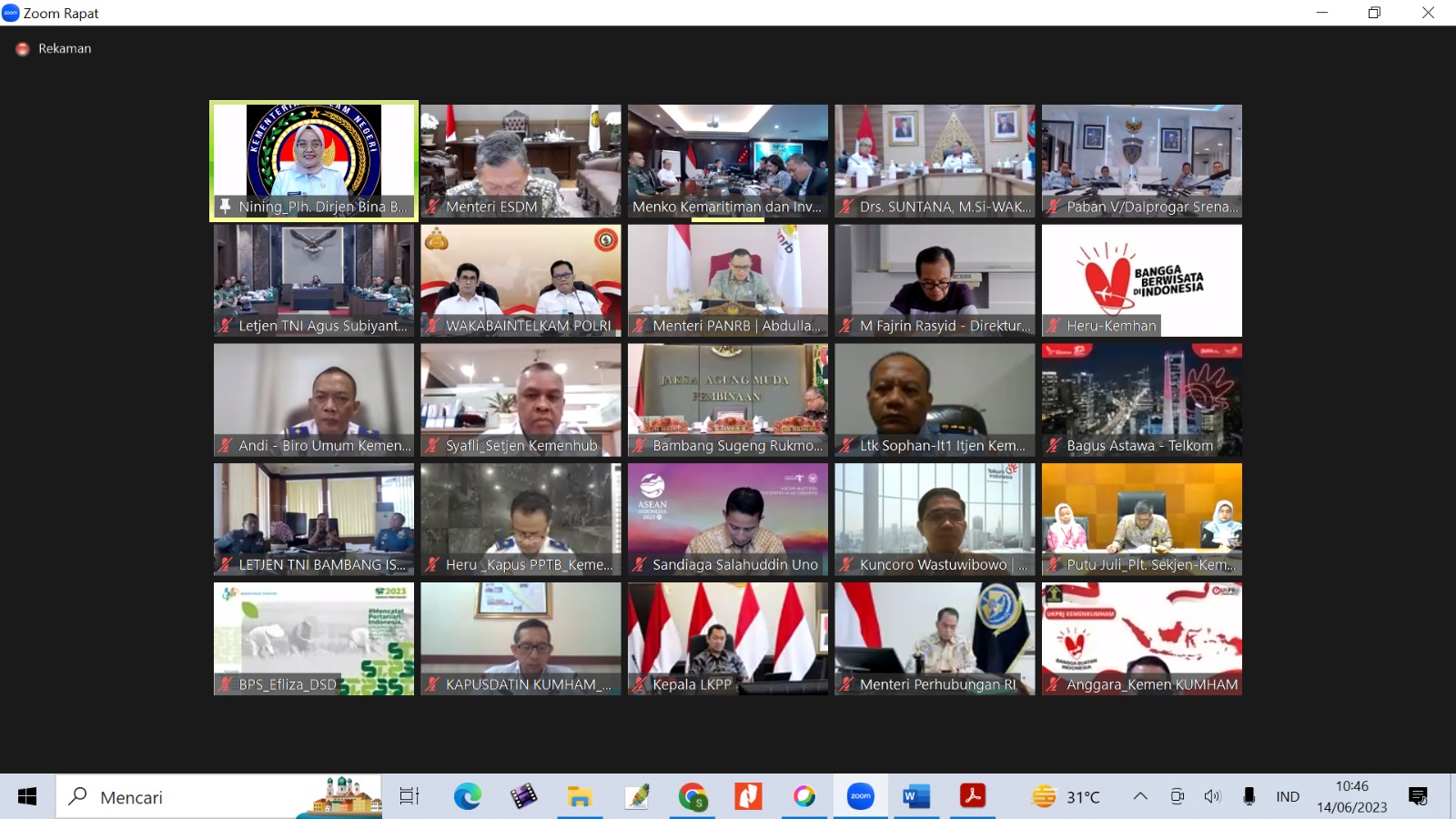 Jakarta,(radarnews.id)-Plh. Dirjen Bina Pembangunan Daerah Kemendagri Sri Purwaningsih menghadiri rapat koordinasi Sistem Pemerintahan Berbasis Elektronik (SPBE) dan Aksi Afirmasi Pembelian Produk Dalam Negeri (PDN) serta Pemanfaatan Bangga Buatan Indonesia (BBI) yang diselenggarakan secara hybrid, Rabu (21/6/2023).