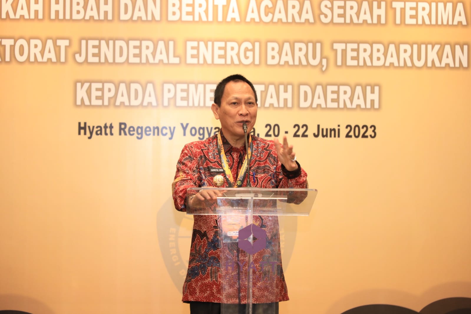 TUBA,(Radarnews.id)-Penjabat Bupati Tulang Bawang Drs Qudrotul Ikhwan MM hadiri Penandatanganan Berita Acara Serah Terima (BAST) dan Naskah Hibah Barang Milik Negara (BMN) di Lingkungan Badan Geologi dan Direktorat Jendral Energi Baru, Terbarukan dan Konservasi Energi Kementerian Energi Dan Sumber Daya Mineral Republik Indonesia. Acara ini diselenggarakan di Hyatt Regency, Yogyakarta (21/06)