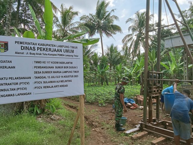 Dandim 0429/Lamtim Letkol Inf Czi. Indra Puji Triwanto, SH selaku Dansatgas TMMD Ke -117 mengatakan selain melaksanakan 10 sasaran fisik lain, Satgas juga membangun titik sumber air bersih (sumur bor) untuk mencukupi kebutuhan air bersih bagi masyarakat Desa Sumber Marga.