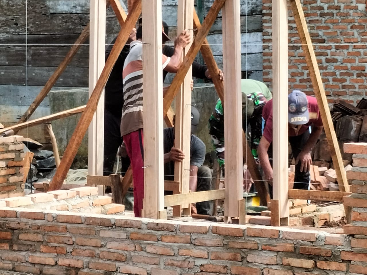 Masih disampaikan Pria yang berdinas di Lanal Lampung ini bahwa memasuki hari ke-5 program TMMD pembangunan RTLH sudah sampai tahap pemasangan kusen dan batu.