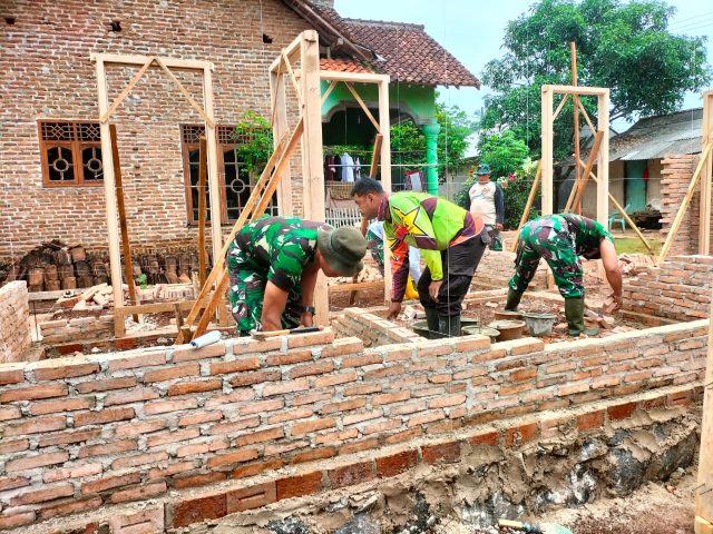 Lampung Timur,(radarnews.id)- Pembangunan Rumah Tidak Layak Huni (RTLH) sasaran fisik TMMD ke-117 milik guru mengaji Bapak Juhaidi (52) yang beralamt di kebut pengerjaanya, Minggu (16/72023).