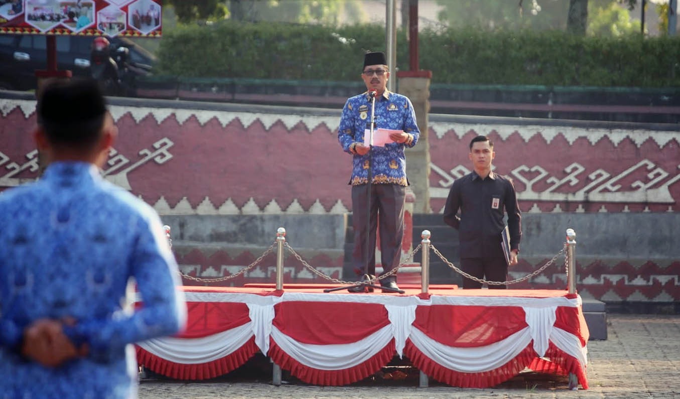Upacara bulanan yang digelar di Lapangan Korpri, Kalianda, diikuti oleh para pejabat Pimpinan Tinggi Pratama, Pejabat Administrator, Pejabat Pengawas, seluruh staf Aparatur Sipil Negara (ASN), serta Tenaga Harian Lepas Sukarela ( THLS) dilingkungan Pemkab Lampung Selatan.