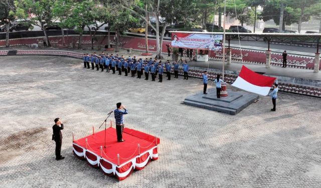 LAMSEL, Kalianda,(radarnews.id) – Sekretaris Daerah (Sekda) Kabupaten Lampung Selatan, Thamrin memimpin upacara bulanan yang disatukan dengan peringatan Hari Koperasi ke-76 di lingkungan Pemerintah Kabupaten (Pemkab) setempat, Senin (17/7/2023).