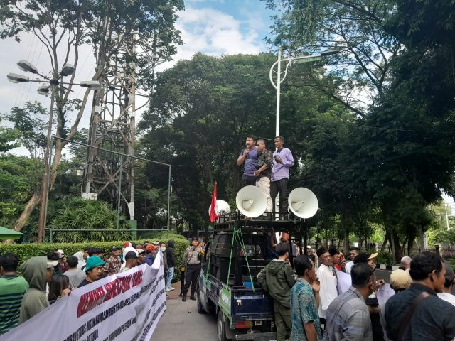 Jakarta, (radarnews.id)-Massa dari Aliansi Masyarakat Sumatera (AMS) Lampung Selatan melakukan aksi unjuk rasa di depan Gedung Kementerian Lingkungan Hidup Dan Kehutanan Republik Indonesia , Jum’at (21 Juli 2023).