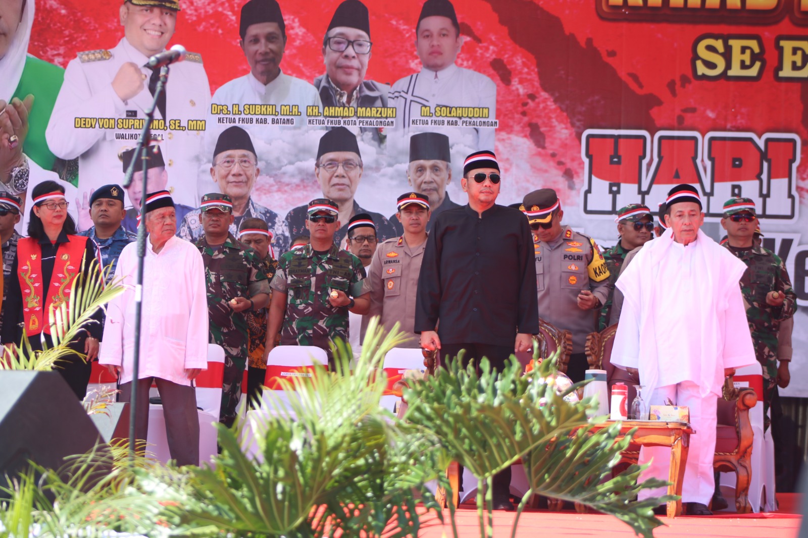 “Maka dari itu, kita tidak bisa dipisah pisahkan dengan Polri dengan TNI dengan tokoh agama dengan ulama karena pada hari ini kita menunjukan kekuatan yang luar biasa untuk Indonesia negara yang tidak bisa dipisah pisahkan,” ujar Habib Luthfi.