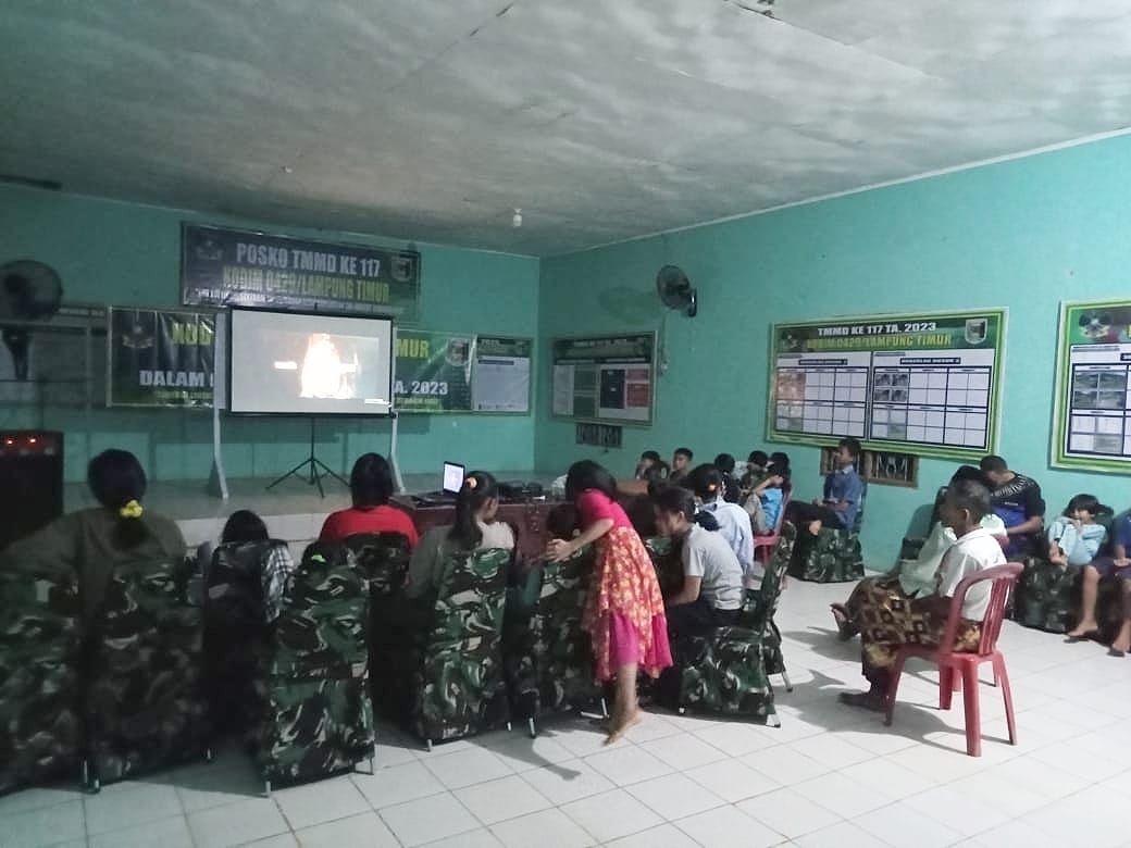 Sementara Pasiter Satgas TMMD Lettu Kav. Aprizal menyampaikan kegiatan nobar sendiri hanya dilaksanakan setiap akhir pekan.