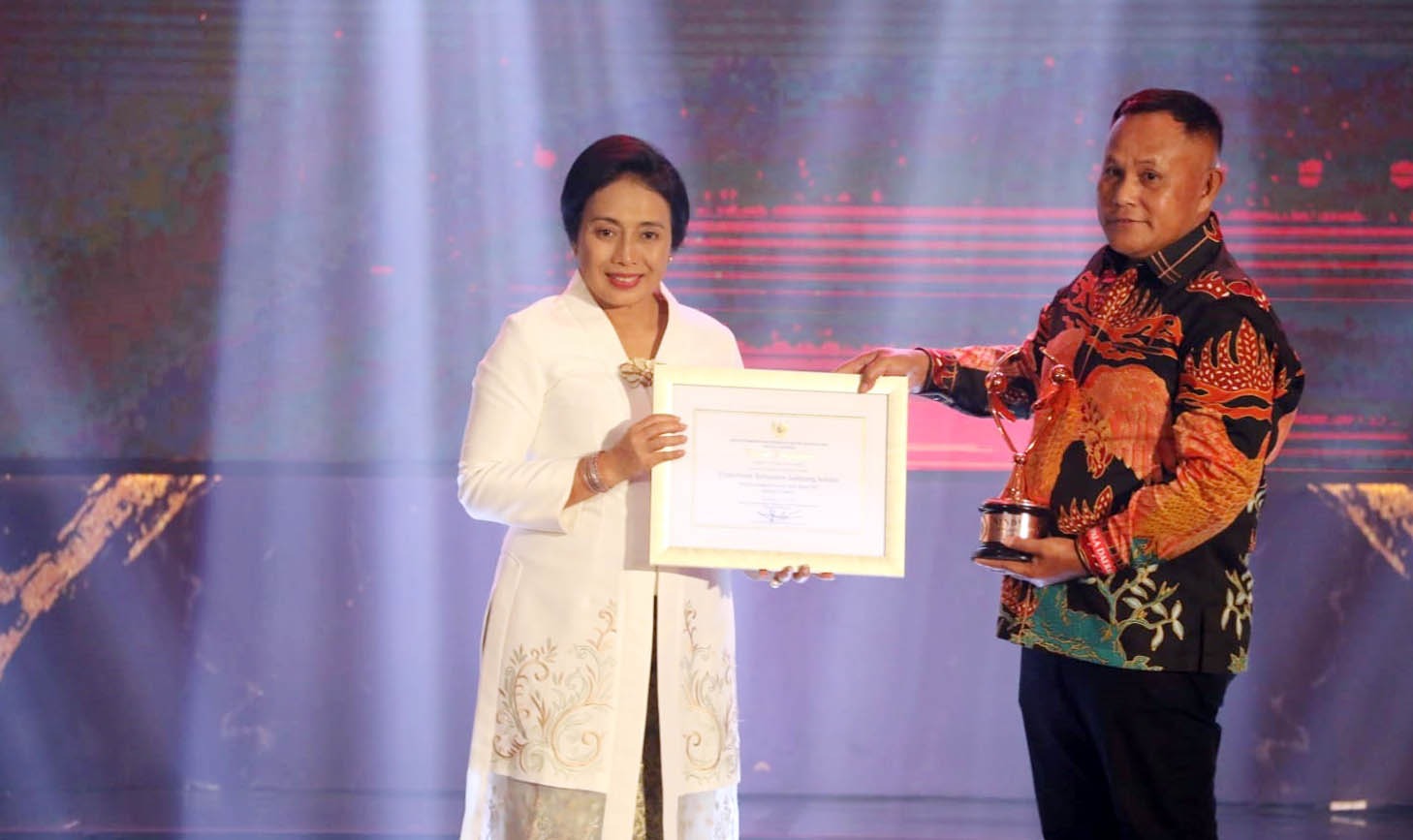 Penghargaan itu diserahkan Menteri PPPA RI I Gusti Ayu Bintang Darmawati kepada Bupati Lampung Selatan H. Nanang Ermanto dalam malam Penghargaan Kabupaten/Kota Layak Anak Tahun 2023 yang digelar di Hotel Padma, Semarang, pada Sabtu malam (22/7/2023).