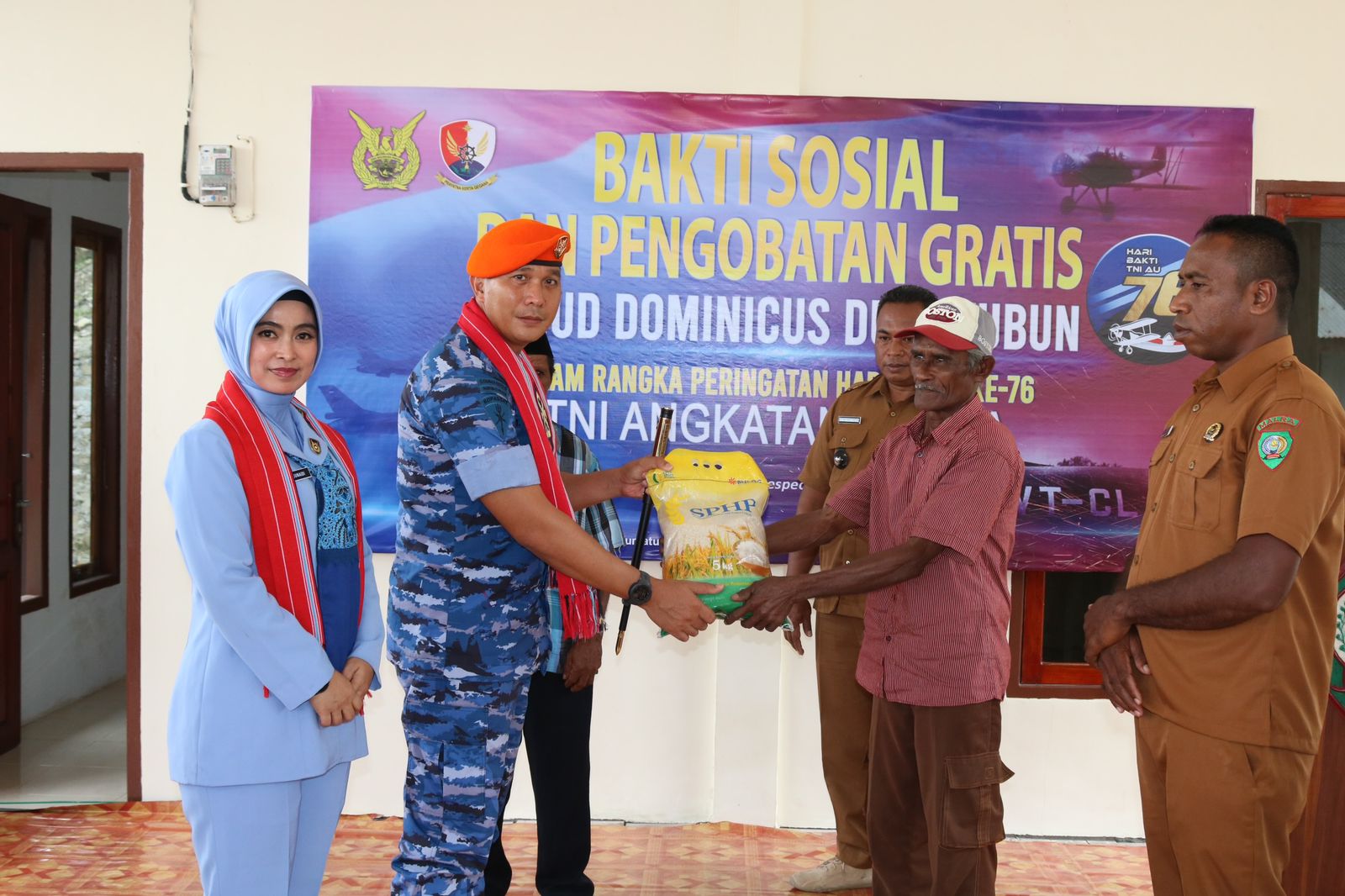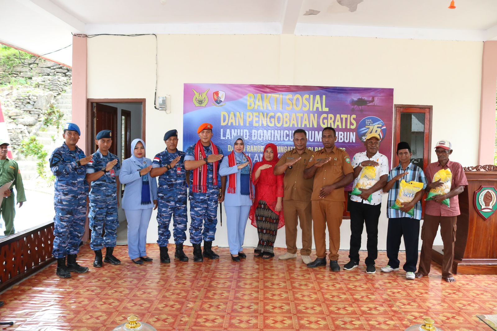 Malra,(Radar News.Id)-Dalam rangka menyambut peringatan Hari Bakti ke 76 TNI Angkatan Udara tahun 2023, Lanud Dominicus Dumatubun (DMN) melaksanakan kegiatan bakti sosial (Baksos), pengobatan gratis dan Pemberian sembako.