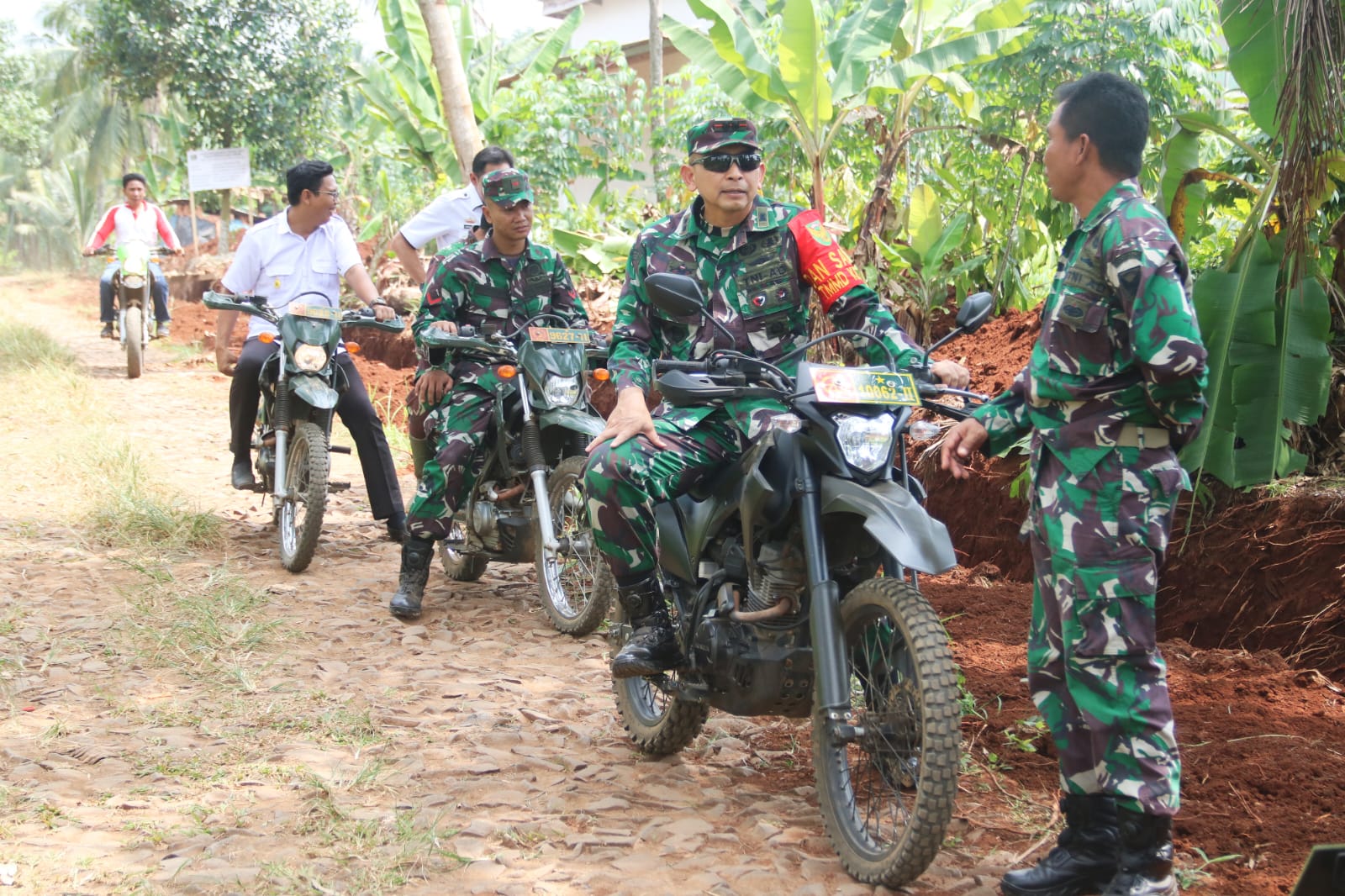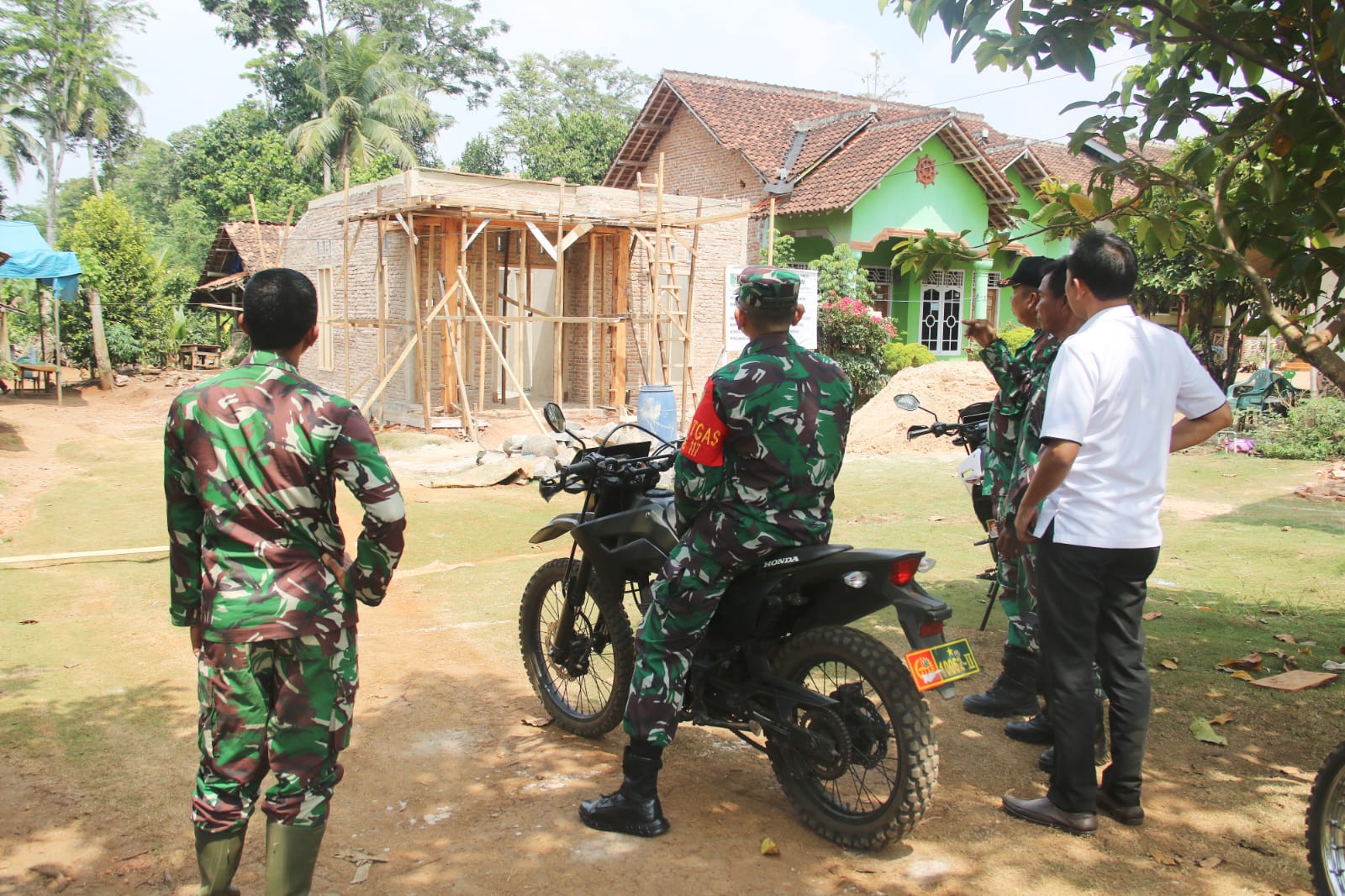 Turut mendampingi Dansatgas, Danramil 429-10/Labuhan Maringgai Kapten Inf. H. Gustian, Pasiter Kodim 0429/Lamtim Lettu Kav. Aprizal, Dan SSK Lettu Inf. Sugiri, Kabid Cipta Karya Lamtim Bambang Sutrisno.,S.Sos serta Kades Sumber Marga Rosid.