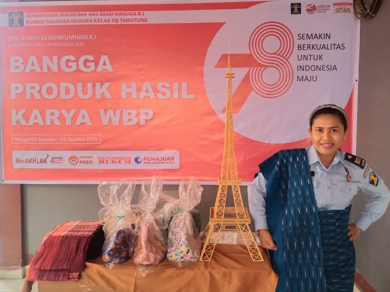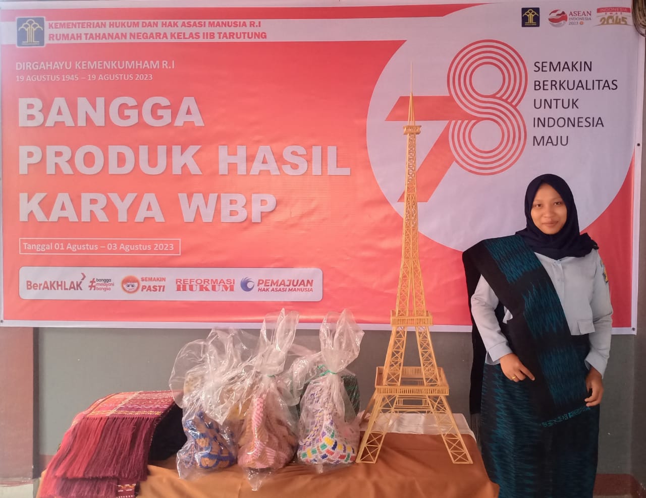 Tapanuli Utara, (radarnews.id) – Rumah Tahanan Negara Kelas IIB Tarutung Kanwil Kemenkumham Sumut gelar One Day One Prison Product hasil karya warga binaan pemasyarakatan Rutan Tarutung, Selasa (01/08/2023).