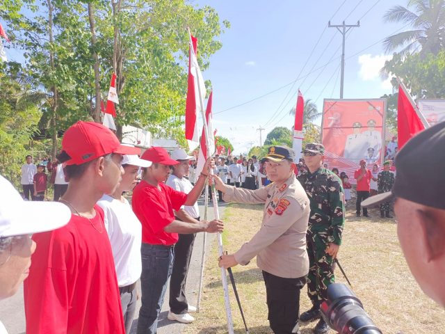 Malra, (Radar news.Id)-Kapolres Maluku Tenggara, AKBP FRANS DUMA,S P, beserta Bupati Malra bersama rombongan melaksanakan Kirab Bendera Merah Putih, dalam rangka memperingati Hari Ulang Tahun Negara Kesatuan Republik Indonesia ke-78 di wilayah kec. Kei Kecil Timur.