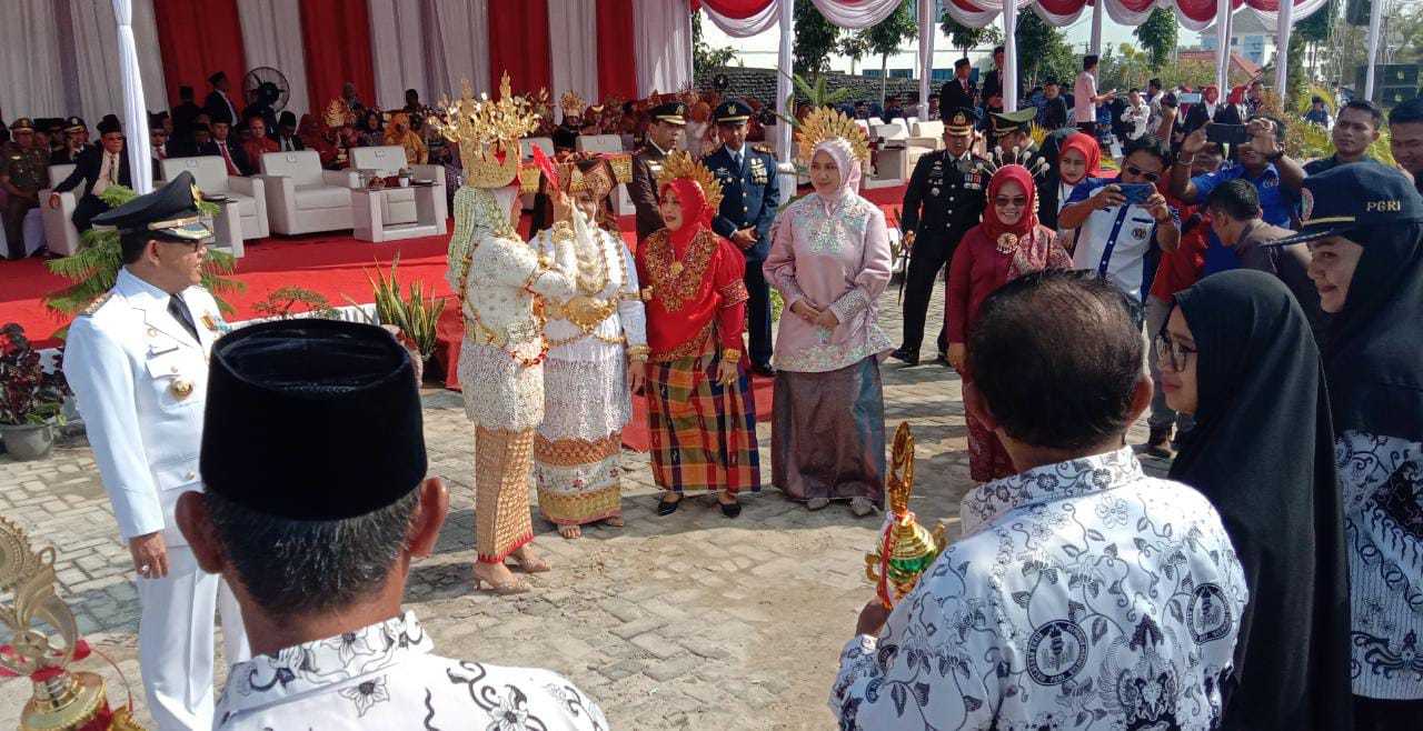 Mesuji,(radarnews.id) – Keberagaman pakaian adat Nusantara yang ada di Indonesia mewarnai kemeriahan peringatan Hari Ulang Tahun ke-78 Republik Indonesia saat upacara bendera, di Lapangan Kantor Bupati Kabupaten Mesuji, Kamis (17/08/23).