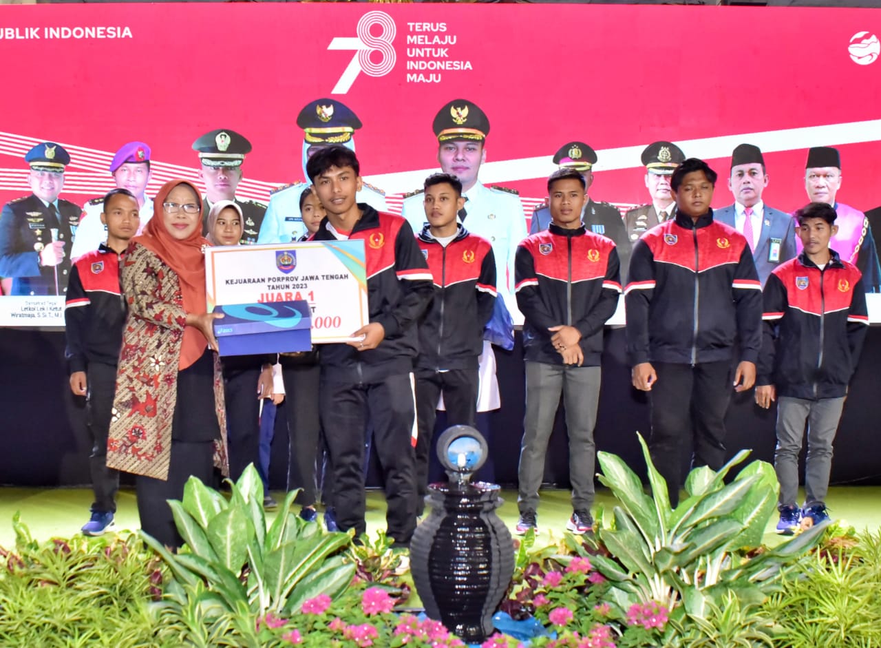 Slawi, (radarnews.id) – Bupati Tegal Umi Azizah memberikan uang pembinaan dan sepatu olahraga kepada atlet yang berhasil meraih medali di ajang Pekan Olahraga Provinsi (Porprov) Jawa Tengah Tahun 2023. Penyerahan bonus tersebut dilaksanakan saat Malam Resepsi Peringatan HUT ke-78 Kemerdekaan RI di Pendopo Amangkurat, Kamis (17/08/2023).