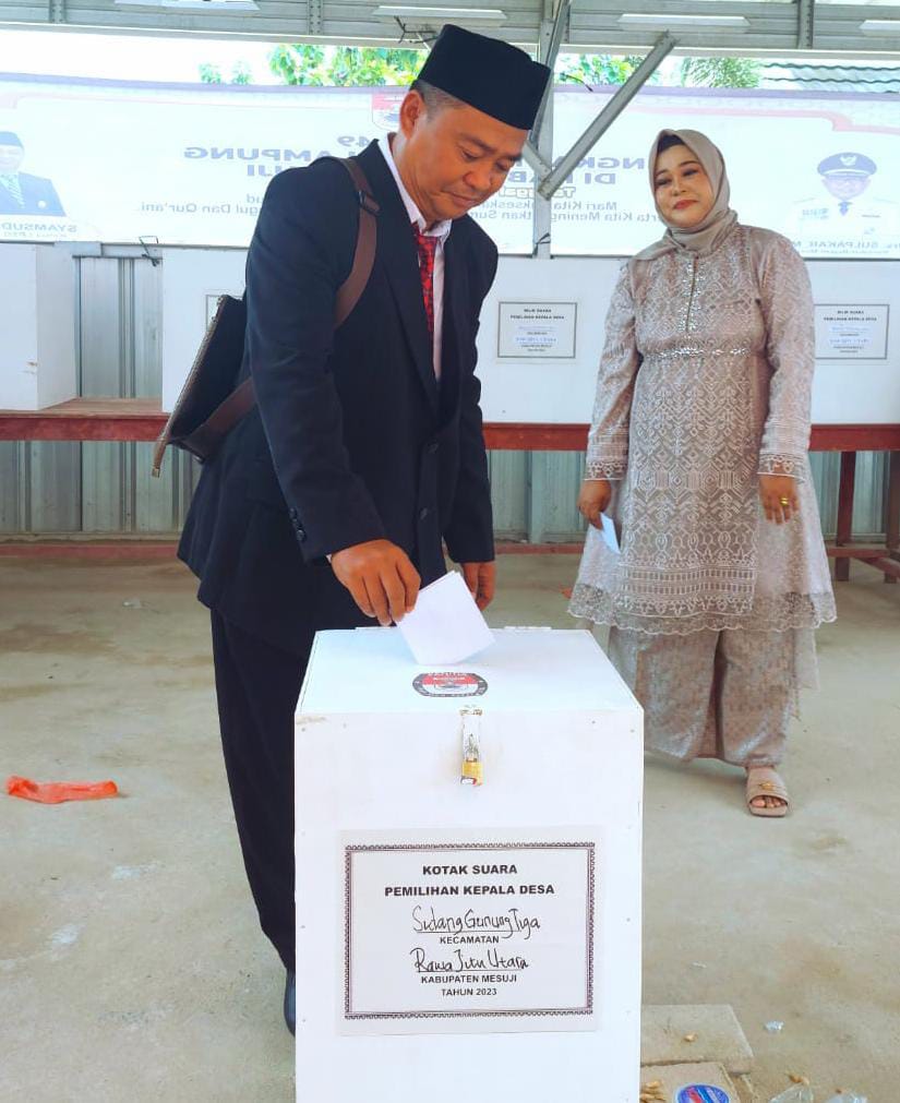 Mesuji,(radarnews.id) – Pemilihan Kepala Desa Sidang Gunung Tiga, Kecamatan Rawa Jitu Utara, Kabupaten Mesuji yang digelar secara serentak pada hari Senin (28/08/23) kemarin. Pilkades Sidang Gunung Tiga tersebut diikuti oleh 3 kandidat calon Kades yang bersaing memperebutkan suara rakyat untuk menakodai Desa tersebut kedepannya lebih baik lagi serta bisa melanjutkan program – program yang di nilai cukup baik untuk masyarakatnya.