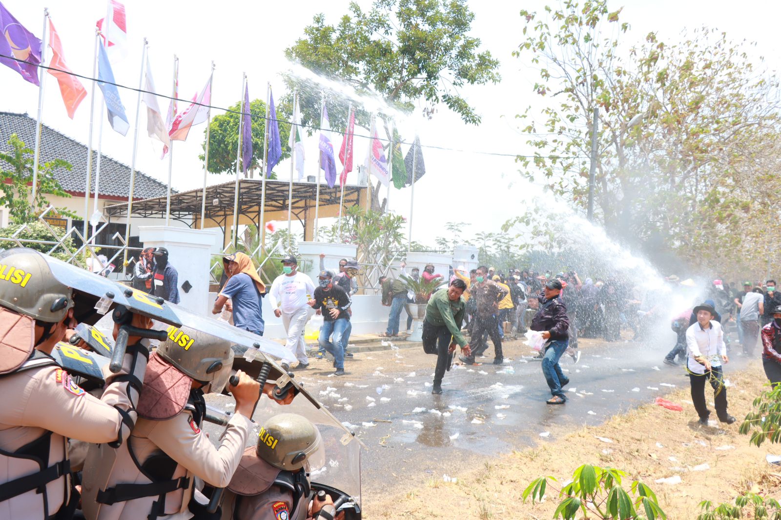 LAMPUNG TIMUR,(radarnews.id) – Ratusan massa menggelar aksi demonstrasi, di Kantor Komisi Pemilihan Umum (KPU) Kabupaten Lampung Timur, pada Selasa (17/10).