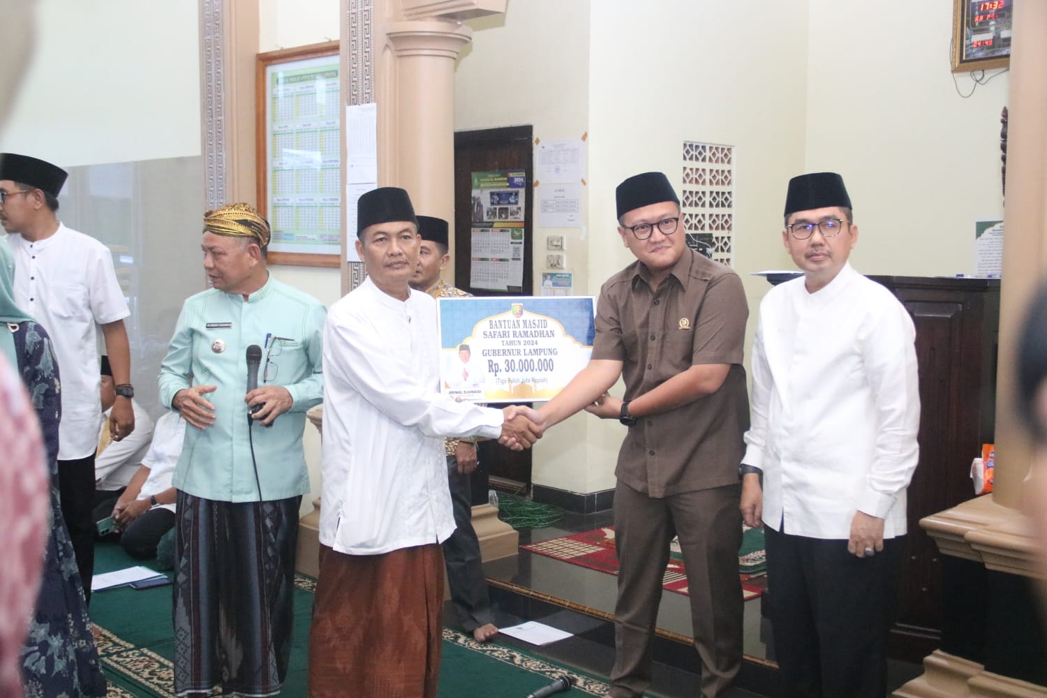 Dalam kesempatan tersebut Pemerintah Provinsi Lampung secara simbolis menyerahkan bantuan masjid sebesar Rp. 30 juta dan penyerahan santunan kepada anak yatim dan kaum dhuafa.