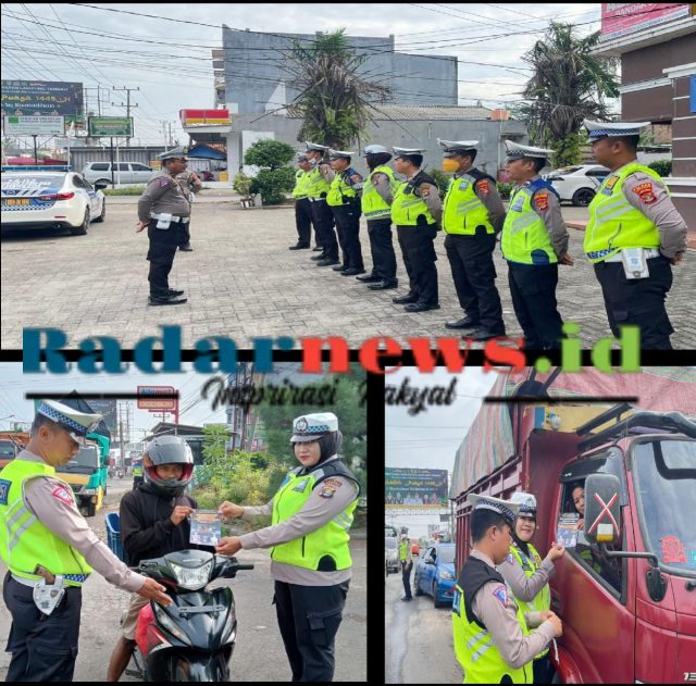Lampung Tengah,(Radarnews.id) – Untuk menekan pelanggaran dan kecalakaan lalulintas dalam rangka Operasi Keselamatan Krakatau 2024, Satlantas Polres Lampung Tengah, Polda Lampung terus melakukan edukasi tertib berlalu lintas kepada masyarakat di Jalan Lintas Tengah (Jalinteng) Sumatera, tepatnya di simpang Pos Gatur 04 Yukum Jaya Kec. Terbanggi Besar Kab. Lampung Tengah, pada Sabtu (16/3/24) pagi.