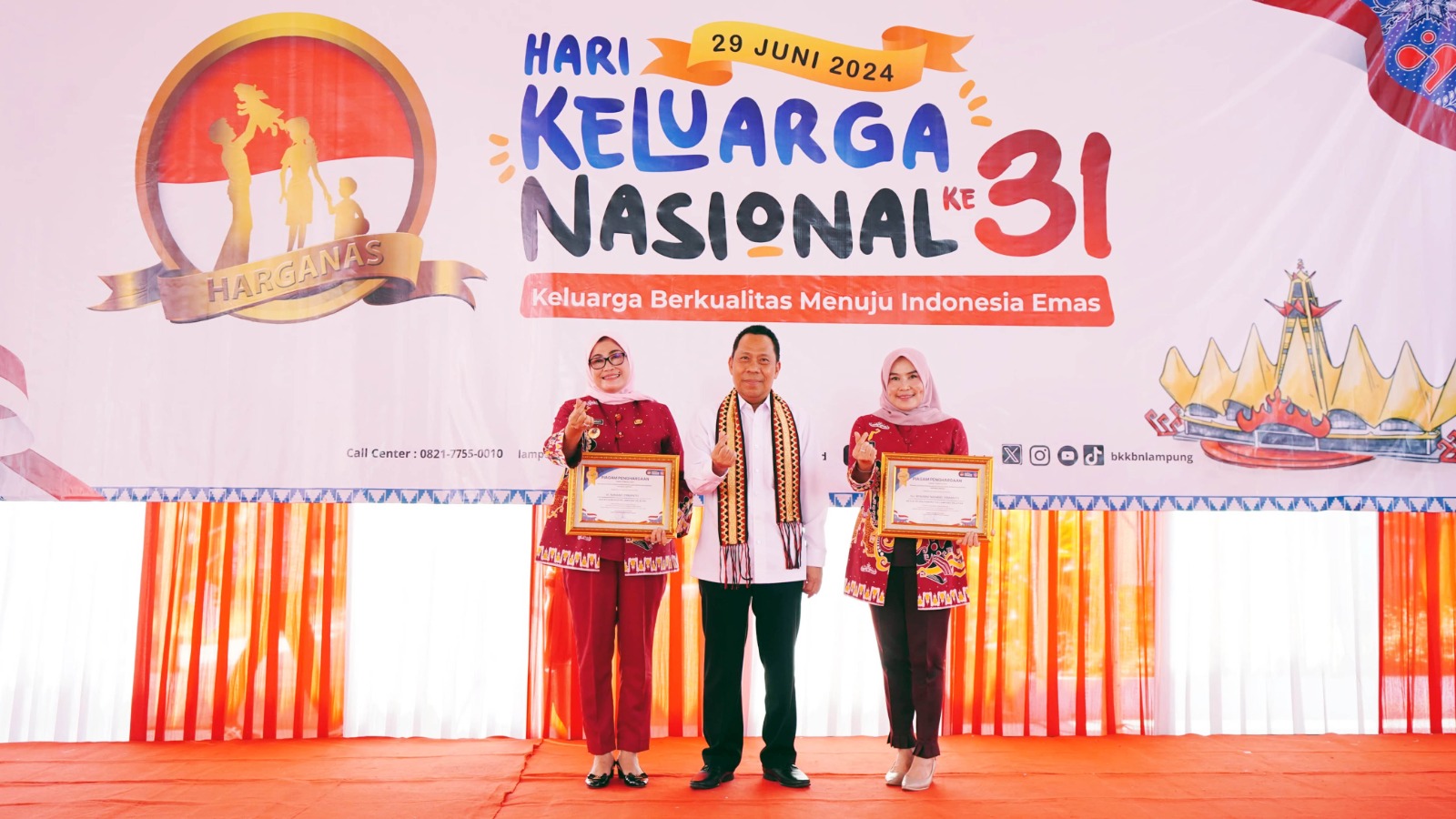 Penghargaan itu diterima Asisten Bidang Pemerintahan dan Kesejahteraan Rakyat Kabupaten Lampung Selatan, Intji Indriati dan Ketua Tim Pengegrak PKK, Hj. Winarni Nanang Ermanto, pada acara peringatan Hari Keluarga Nasional (Harganas) Tingkat Provinsi Lampung Ke-31 Tahun 2024, di Kantor Perwakilan BKKBN Provinsi Lampung, Bandar Lampung, Kamis (1/8/2024).