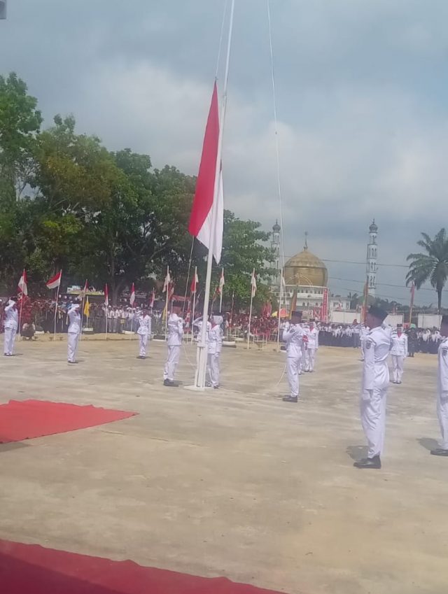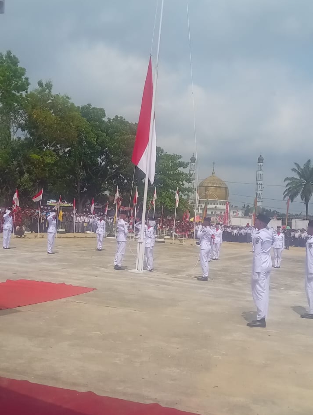 Hal ini sesuai pantauan awak media saat pelaksanaan Upacara Penurunan Bendera, dalam rangka memperingati HUT RI ke-79 yang dilaksanakan halaman kantor camat Simpang Kanan pada Sabtu, 17/8/2024 sore.