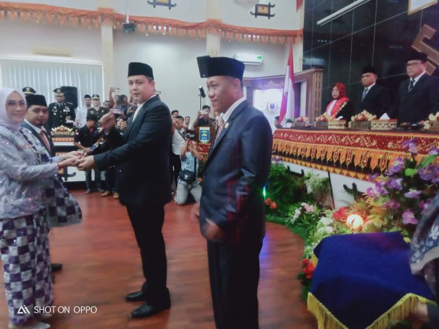 “Satu, undang-undang nomor 23 tahun 2014 tentang pemerintahan daerah sebagaimana diubah terakhir dengan undang-undang undang-undang nomor 6 tahun 2023. Dua, peraturan pemerintah nomor 12 tahun tentang pedoman penyusunan tata tertib dewan perwakilan rakyat daerah provinsi kabupaten dan kota,” ucapnya membacanya isi naskah pelantikan.