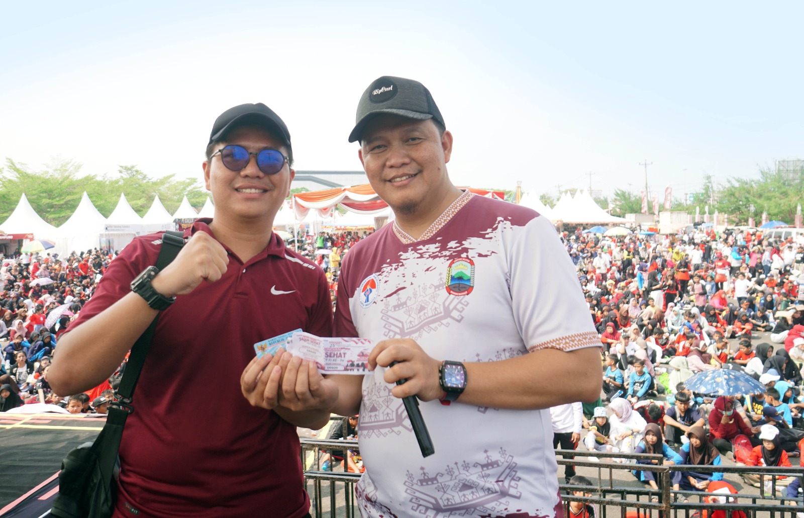 Event jalan sehat bersama Bupati Lampung Selatan, H. Nanang Ermanto dan Ketua TP PKK Hj. Winarni ini diikuti sekitar 15.000 masyarakat dari berbagai kecamatan di Kabupaten Lampung Selatan.