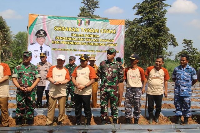 Komandan Kodim 0429/Lamtim Letkol Arm Arief Budiman, S. Sos., M.M menghadiri kegiatan gerakan tanam cabai, bertempat di Lapangan miring, Desa Margototo, Kecamatan Metro Kibang, Kabupaten Lampung Timur, Selasa (12/11/2024).