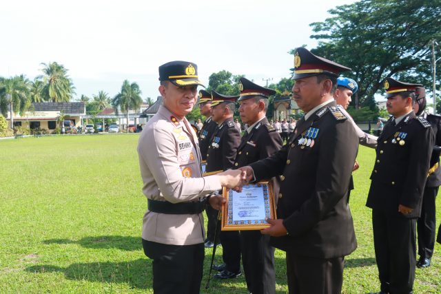 Kapolres Lampung Timur, AKBP Benny Prasetya, memimpin langsung jalannya upacara. Dalam sambutannya, Kapolres menyampaikan rasa hormat dan apresiasi yang tinggi kepada para personel yang telah selesai mengabdi. Ia menegaskan bahwa pengabdian selama bertahun-tahun menjadi bagian penting dari perjalanan Polri, khususnya di wilayah Lampung Timur.
