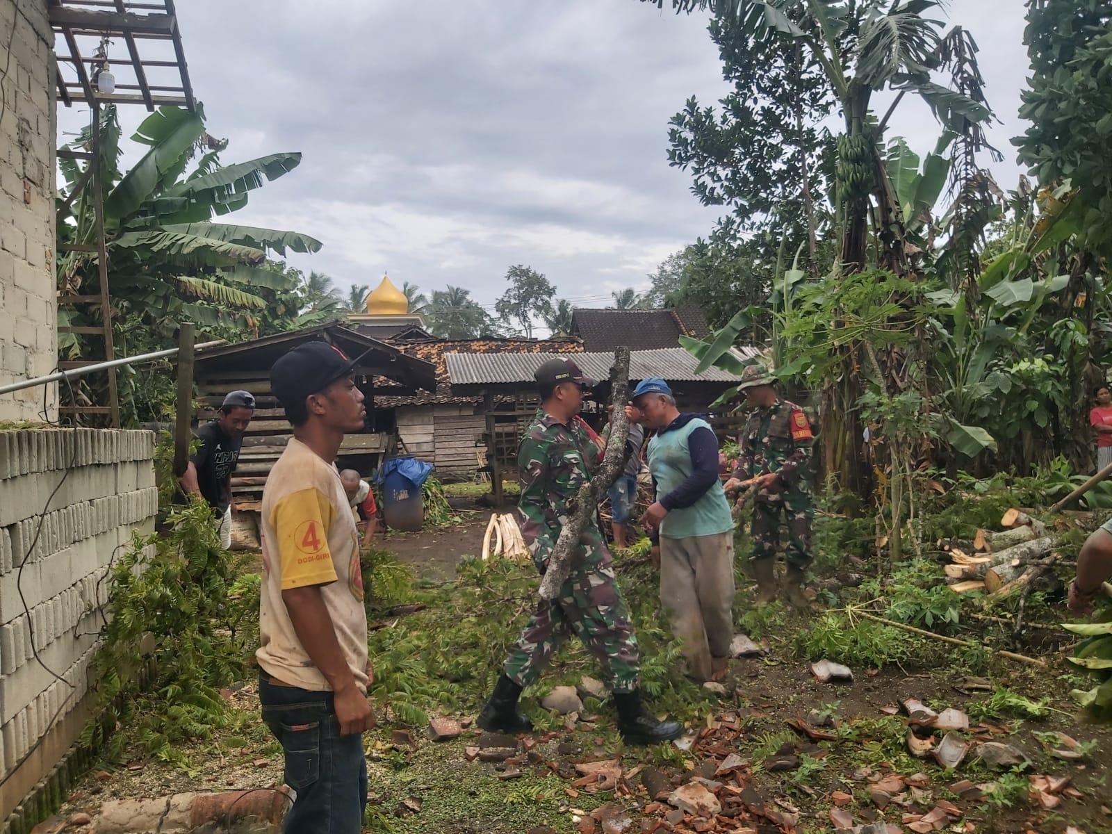 Anggota Koramil 14/Jabung Bantu Warga Terdampak Angin Puting Beliung