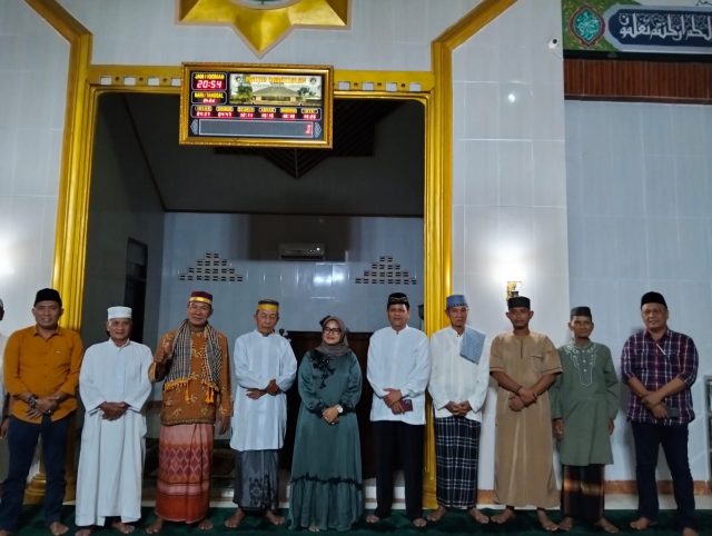 Bupati Lampung Timur Hj Ela Siti Nuryamah M.E.MA.P Sholat Isya Dan Sholat Tarawih Berjamaah dengan Jama’ah Masjid Darussalam Desa Mataram marga Kecamatan Sukadana Kabupaten Lampung Timur Minggu (2 Maret 2025).