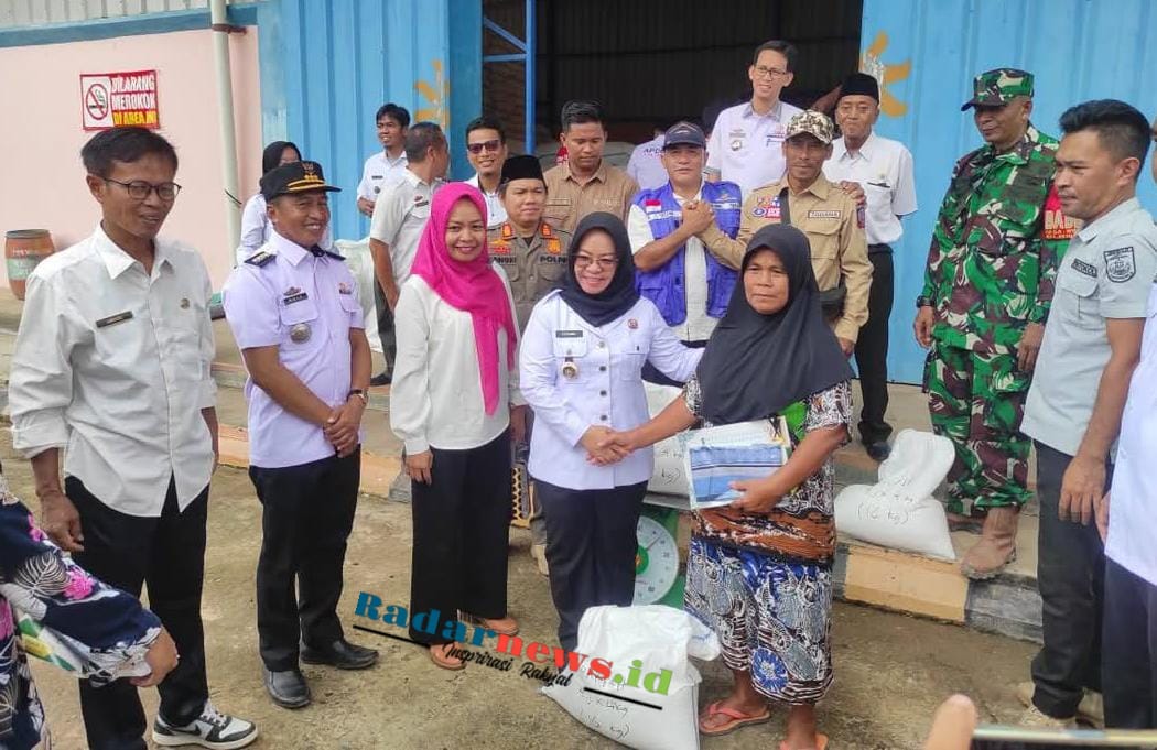 Bupati Mesuji Elfianah didampingi oleh Kepala Dinas Sosial Kabupaten Mesuji, Prasetyo Yura Basrianto di bulan suci Ramadhan 1446.H membagikan bantuan beras reguler kepada masyarakat yang terdampak Banjir di Kecamatan Mesuji Timur, Kabupaten Mesuji. Rabu (05/03/25) kemarin.