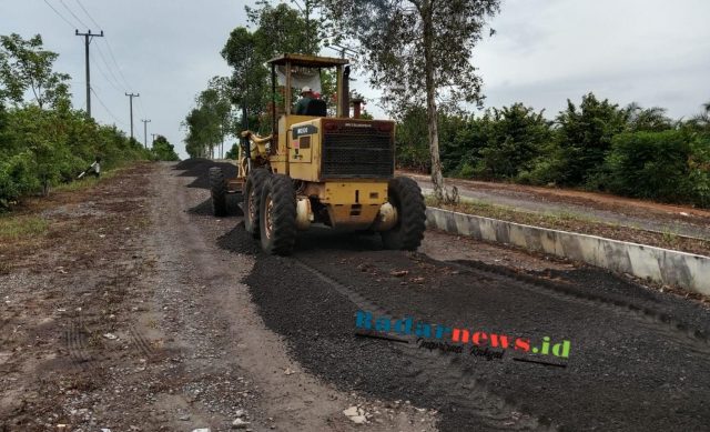 Jalan rusak dan berlubang menuju Rumah Sakit Umum Daerah RBC Kabupaten Mesui, yang bertahun – tahun sempat di keluhkan warga mulai diperbaiki Dinas PUPR Kabupaten Mesuji.