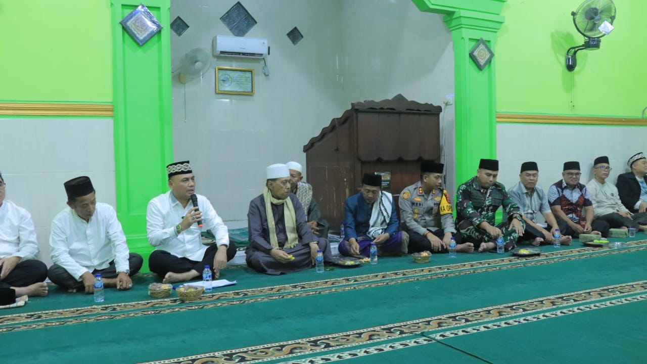 Kapolres Metro turut serta dalam kegiatan Safari Ramadhan 1446 H/2025 M yang bersama Forum Koordinasi Pimpinan Daerah (Forkopimda) Kota Metro di Masjid Darul Hikmah, Kelurahan Yosorejo, Kecamatan Metro Timur, pada Jumat (7/3/2025) malam.