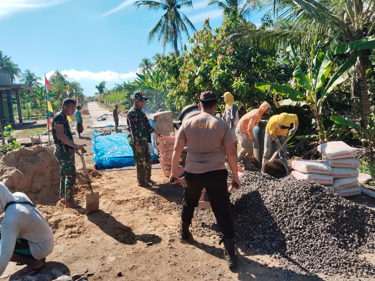 Kekompakan dua institusi TNI Polri pada program TMMD ke-124 tidak hanya terlihat pada kegiatan pengerjaan sasaran fisik saja, namun disetiap momen apapun mereka selalu bersama.