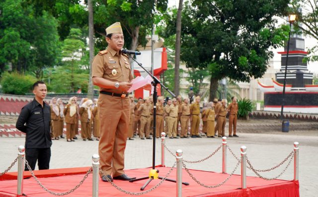 Sekretaris Daerah (Sekda) Kabupaten Lampung Selatan, Supriyanto, menegaskan komitmen percepatan reformasi birokrasi dalam arahannya saat memimpin apel mingguan di Lapangan Korpri, Kalianda, Senin (30/6/2025). Apel tersebut dirangkaikan dengan peringatan Hari Keluarga Nasional ke-32.
