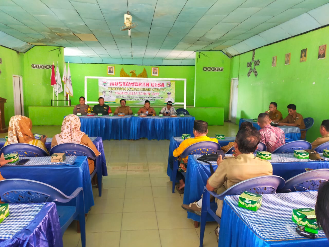 Kegiatan musyawarah desa penetapan Pemutakhiran data Indeks Desa Membangun (IDM) tahun 2025 berlangsung di Balai Desa Raman Aji, Kecamatan Raman Utara, Kabupaten Lampung Timur, Selasa (8/7).