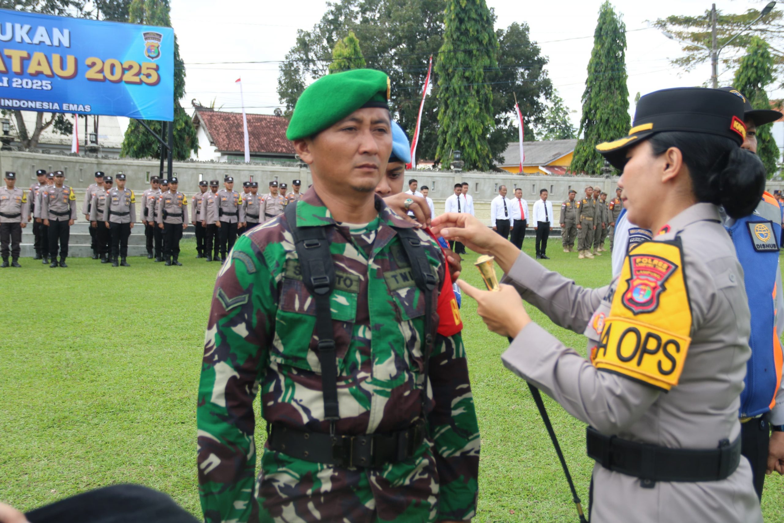 Wujud sinergitas TNI Polri di wilayah Lampung Timur, Dandim 0429/Lamtim Letkol Inf Danang Setiaji, S.I.P menghadiri Apel Gelar Pasukan Operasi Patuh Krakatau 2025 Polres Lampung Timur, Senin (14/7).