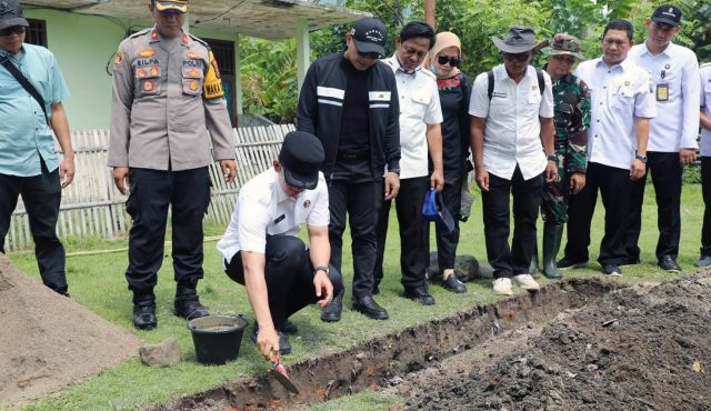 Kunjungan kerja Bupati Egi ditutup dengan peletakan batu pertama sebagai tanda dimulainya pembangunan ruang kelas tambahan.