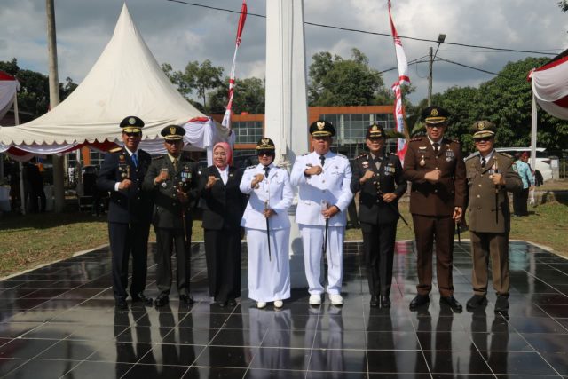 Peringatan HUT Kemerdekaan RI ke-80 yang mengambil Tema “Bersatu Berdaulat, Rakyat Sejahtera Indonesia Maju” ini ditandai dengan pengibaran bendera merah putih diiringi lagu Indonesia Raya, yang diikuti oleh seluruh perwakilan TNI, Polri, Instansi Pemerintah, para pelajar serta segenap tamu undangan.