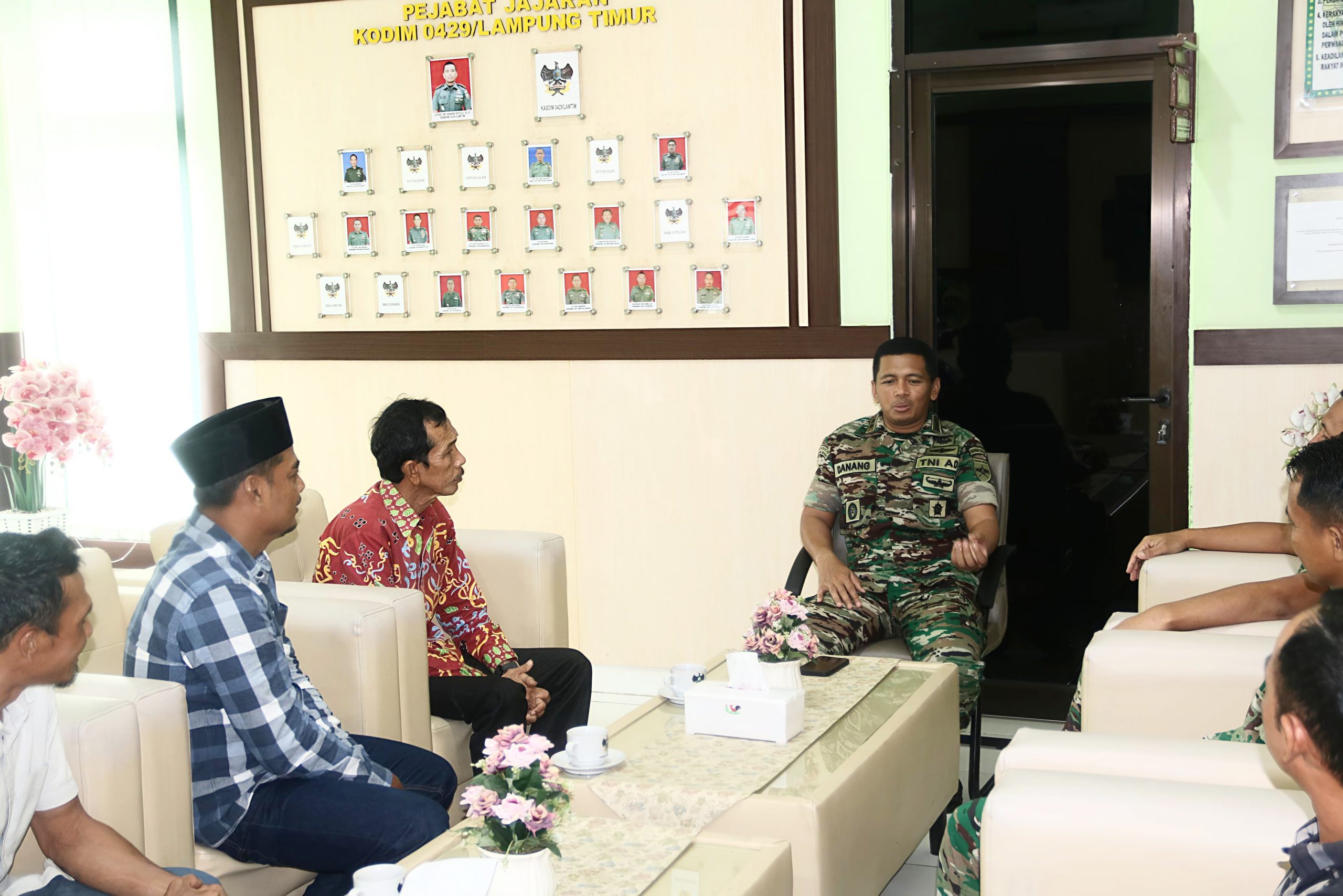 Dandim 0429/Lamtim Letkol Inf Danang Setiaji, S.I.P didampingi Pasiter Kapten Kav Afrizal terima audiensi Brigade Pangan Milenial Sumber Asri Sejahtera, bertempat di ruang transit Makodim, Jl. Soekarno-Hatta, Desa Mataram Marga, Kecamatan Sukadana, Jum’at (29/8/2025).